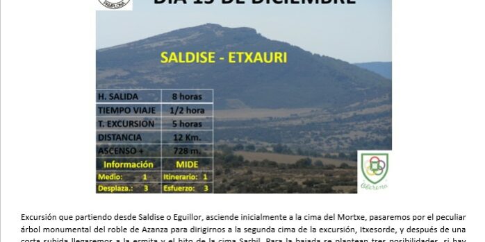 Excursión circular con salida desde Saldise para llegar a la cima de Mortxe, continuando al Itxesorde y terminar en Sarbil.