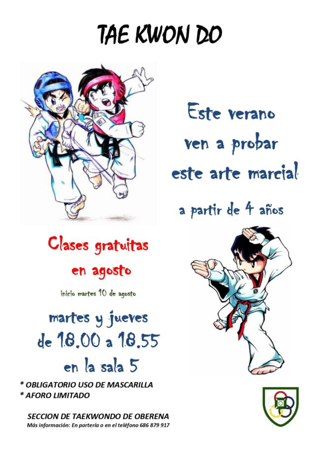 A partir del martes 10 de agosto la sección de Taekwondo ofrece clases gratuitas a los socios mayores de 4 años los días 10,12,17,19,24,26 y 31 de agosto. Las clases…