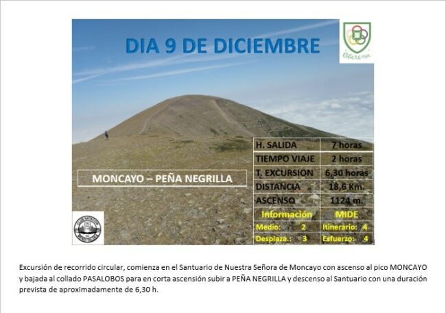 Excursión circular de 10,7 km y 6h30′. Se informará sobre hora de salida, debiendo apuntaros antes del 6 de diciembre en las oficinas del Club Natacion (948 223706).