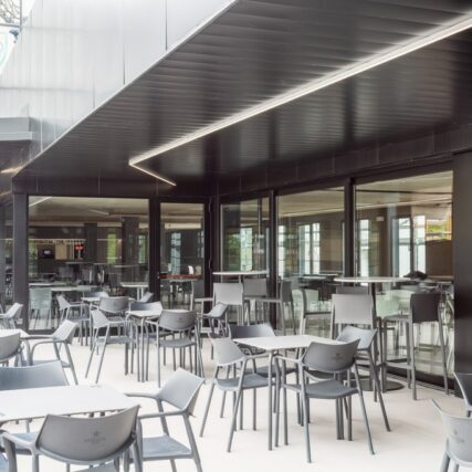 Situado anexo al edificio social y junto al bar, permite al socio disfrutar cubierto o al aire libre de las comidas, meriendas y cenas adquiridas en nuestras instalaciones o autogestionadas.